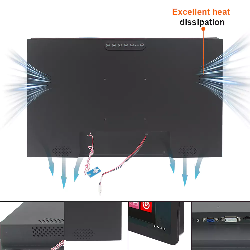 To handle this, the housing of the industrial touch screen monitor uses optimized airflow paths and multiple ventilation areas.